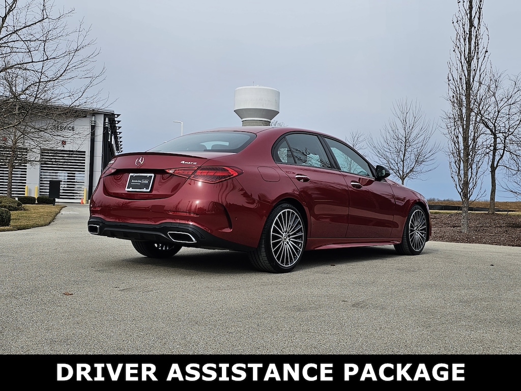 MANUFAKTUR Patagonia Red Metallic 2025 Mercedes-Benz C-Class C 300 4MATIC® 9-Speed Automatic 2.0L I4 Turbocharged 4MATIC®, Active Lane Change Assist, Active Speed Limit Assist, AMG® Body Styling, AMG® Line Exterior, AMG® Line with Night Package, Animated LED Logo Projector, Apple CarPlay®/Android Auto®, Auto-dimming Rear-View mirror, Automatic Lane Change, Burmester® Surround Sound System, DISTRONIC Plus® with Steering Assist and Stop and Go Assist, Driver Assistance Package, Enhanced Ambient Light, Exclusive Trim Package, GUARD 360, Heated Steering Wheel, Illuminated Door Sill Panels, Illuminated Door Sills, MB Navigation, MB-Tex Dashboard, Night Package, Panorama Roof, Perforated Brake Discs, PRE-SAFE® Brake with Pedestrian Recognition, PRE-SAFE® Impulse Side, PRE-SAFE® PLUS, Route-Based Speed Adaptation, Sport Suspension with Sport Steering System, Star Grille, Surround View, Wheels: 19" AMG® Multispoke with Black Accents.