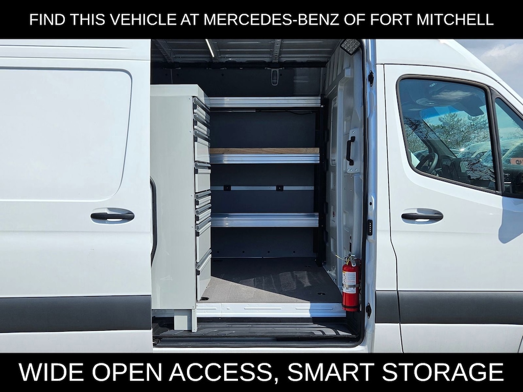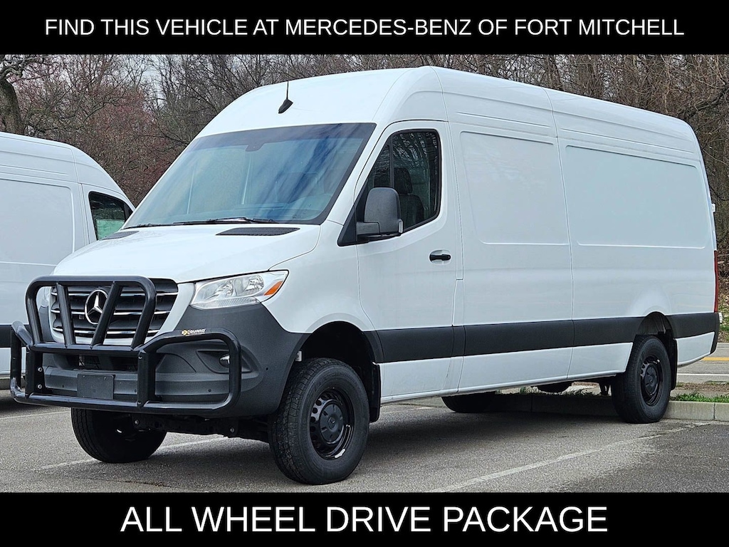 This 2024 Mercedes-Benz Sprinter 2500 comes with following features: All Wheel Drive Package, 3.923 Axle Ratio, 4-Wheel Disc Brakes, 5 Speakers, 6.5J x 16" Steel Wheels, ABS brakes, Air Conditioning, AM/FM radio, Bodyside moldings, Brake assist, Driver door bin, Driver's Seat Mounted Armrest, Dual front impact airbags, Dual front side impact airbags, Electronic Stability Control, Emergency communication system, Exterior Parking Camera Rear, Front anti-roll bar, Front Bucket Seats, Front wheel independent suspension, Fully automatic headlights, Heated door mirrors, Heated Driver's Seat, Heated front seats, Illuminated entry, Low tire pressure warning, Outside temperature display, Overhead airbag, Overhead console, Passenger door bin, Passenger seat mounted armrest, Power door mirrors, Power steering, Power windows, Radio: Standard, Remote keyless entry, Speed control, Speed-sensing steering, Standard Driver Seat, Standard Front Passenger Seat, Steering wheel mounted audio controls, Tachometer, Tilt steering wheel, and Traction control.