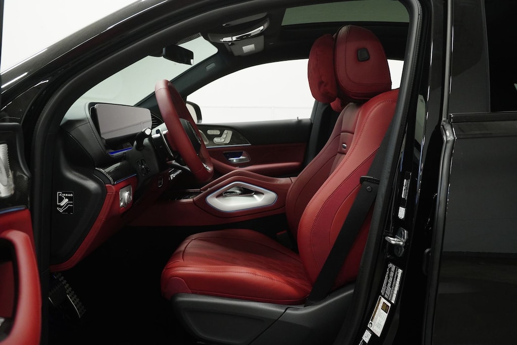This 2026 Mercedes-Benz GLE comes with following features: 13 Speakers, 21" AMG® Twin 5-Spoke Wheels, 4-Wheel Disc Brakes, ABS brakes, Adaptive suspension, Air Conditioning, Alloy wheels, AM/FM radio: SiriusXM, Anti-whiplash front head restraints, Apple CarPlay®/Android Auto®, Auto High-beam Headlights, Auto tilt-away steering wheel, Auto-dimming door mirrors, Auto-dimming Rear-View mirror, Auto-leveling suspension, Automatic temperature control, Brake assist, Brushed Aluminum Trim, Bumpers: body-color, Child-Seat-Sensing Airbag, Compass, Delay-off headlights, Driver door bin, Driver vanity mirror, Dual front impact airbags, Dual front side impact airbags, Electronic Stability Control, Emergency communication system: eCall Emergency System, Exterior Parking Camera Rear, Four wheel independent suspension, Front anti-roll bar, Front Bucket Seats, Front Center Armrest, Front dual zone A/C, Front reading lights, Fully automatic headlights, Garage door transmitter: HomeLink, Heated door mirrors, Heated front seats, Htd & Vent Power Front Seats w/Driver Memory, Illuminated entry, Knee airbag, Leather steering wheel, Low tire pressure warning, Memory seat, Nappa Leather Dashboard & Door Panels, Nappa Leather Seat Trim, Navigation system: MBUX, Occupant sensing airbag, Outside temperature display, Overhead airbag, Panic alarm, Passenger door bin, Passenger vanity mirror, Power adjustable front head restraints, Power door mirrors, Power driver seat, Power Liftgate, Power moonroof: Panorama, Power passenger seat, Power steering, Power windows, Premium audio system: MBUX, Radio data system, Radio: 12.3" Media Display w/Touchscreen, Rain sensing wipers, Rapid Heating Front Seats, Rear anti-roll bar, Rear fog lights, Rear reading lights, Rear seat center armrest, Rear window defroster, Remote keyless entry, Security system, Speed control, Speed-sensing steering, Speed-Sensitive Wipers, Split folding rear seat, Spoiler, Sport steering wheel, Steering wheel memory, Steering wheel mounted audio controls, Tachometer, Telescoping steering wheel, Tilt steering wheel, Traction control, Trip computer, Turn signal indicator mirrors, Ventilated front seats, and Weather band radio.