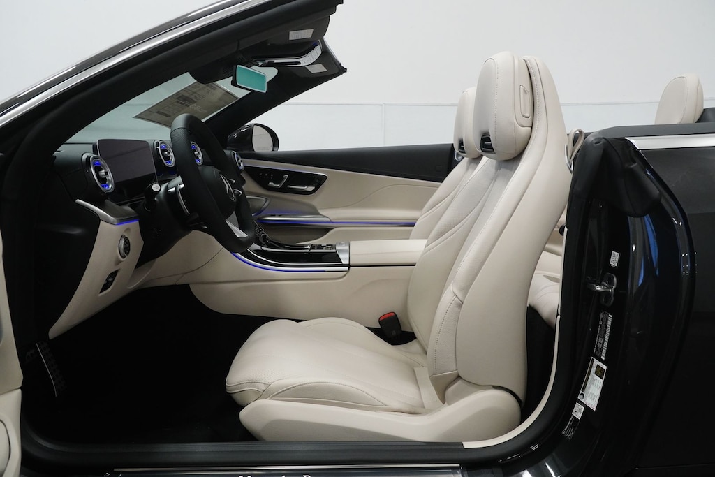 This 2026 Mercedes-Benz CLE comes with following features: I4, 11.9" Center Touchscreen Display, 17 Speakers, 3 USB C-Ports, 4-Wheel Disc Brakes, ABS brakes, Air Conditioning, Alloy wheels, AM/FM radio: SiriusXM w/360L, Apple CarPlay®/Android Auto®, Auto High-beam Headlights, Auto tilt-away steering wheel, Auto-dimming door mirrors, Auto-dimming Rear-View mirror, Automatic temperature control, Brake assist, Bumpers: body-color, Compass, Convertible roof lining, Convertible roof wind blocker, Delay-off headlights, Driver door bin, Driver vanity mirror, Dual front impact airbags, Dual front side impact airbags, Electronic Stability Control, Emergency communication system: Mercedes-Benz Emergency Call Service, Exterior Parking Camera Rear, Four wheel independent suspension, Front anti-roll bar, Front Bucket Seats, Front Center Armrest, Front dual zone A/C, Front reading lights, Fully automatic headlights, Garage door transmitter: HomeLink, Glass rear window, HD Radio, Head restraints memory, Heated door mirrors, Heated Front Seats, Heated front seats, Illuminated entry, Integrated roll-over protection, Knee airbag, Leather steering wheel, Low tire pressure warning, MB Navigation, MB-Tex Seat Trim, Memory seat, Navigation system: MBUX, Occupant sensing airbag, Outside temperature display, Overhead airbag, Overhead console, Panic alarm, Passenger door bin, Passenger vanity mirror, Power adjustable front head restraints, Power convertible roof, Power door mirrors, Power driver seat, Power passenger seat, Power steering, Power windows, Radio data system, Radio: 3rd Generation MBUX Multimedia System, Rain sensing wipers, Rear anti-roll bar, Rear fog lights, Rear window defroster, Remote keyless entry, Security system, SiriusXM Satellite Radio, Speed control, Speed-sensing steering, Split folding rear seat, Steering wheel memory, Steering wheel mounted audio controls, Steering Wheel Shift Paddles, Tachometer, Telescoping steering wheel, Tilt steering wheel, Traction control, Trip computer, Turn signal indicator mirrors, Variably intermittent wipers, Wheels: 18" x 8.0J 5-Twin-Spoke Black, Wireless Android Auto®, and Wireless Apple CarPlay®.